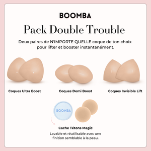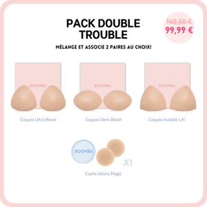 Tombez amoureuse du Pack Double Trouble: Ce lot comprend vos deux coques de votre choix et nos meilleures ventes de Cache-tétons Magiques pour aider à améliorer votre tenue.