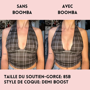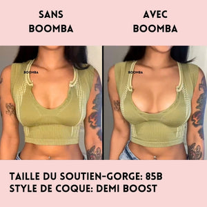 Veuillez noter que les résultats peuvent varier en fonction de la taille et de la forme des seins. Les résultats seront similaires à ceux d'un soutien-gorge double push-up. Les coques rembourrés de BOOMBA fonctionnent mieux avec des seins naturels.