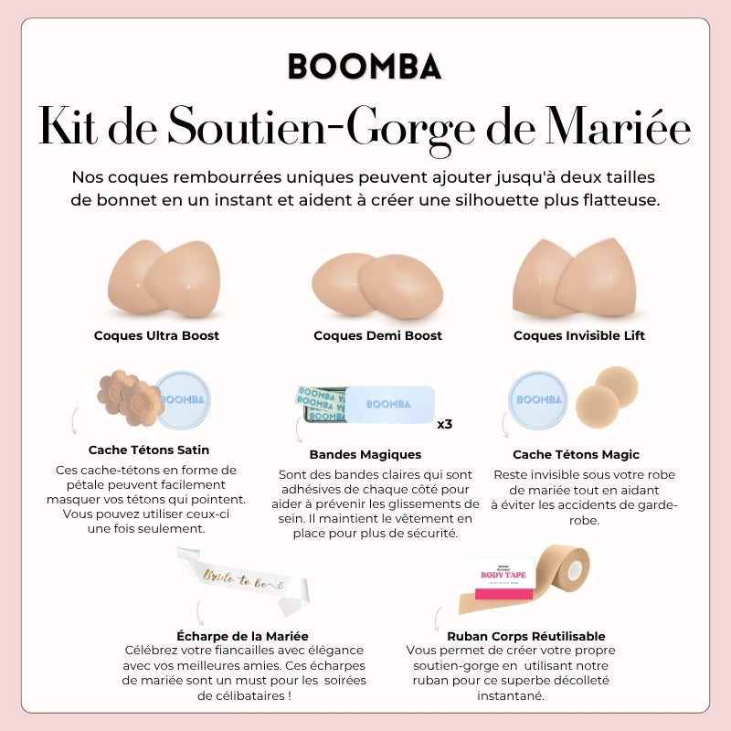 Les coques BOOMBA suppriment les bretelles et les fermetures. Portez des décolletés plongeants et des bikinis en toute confiance.