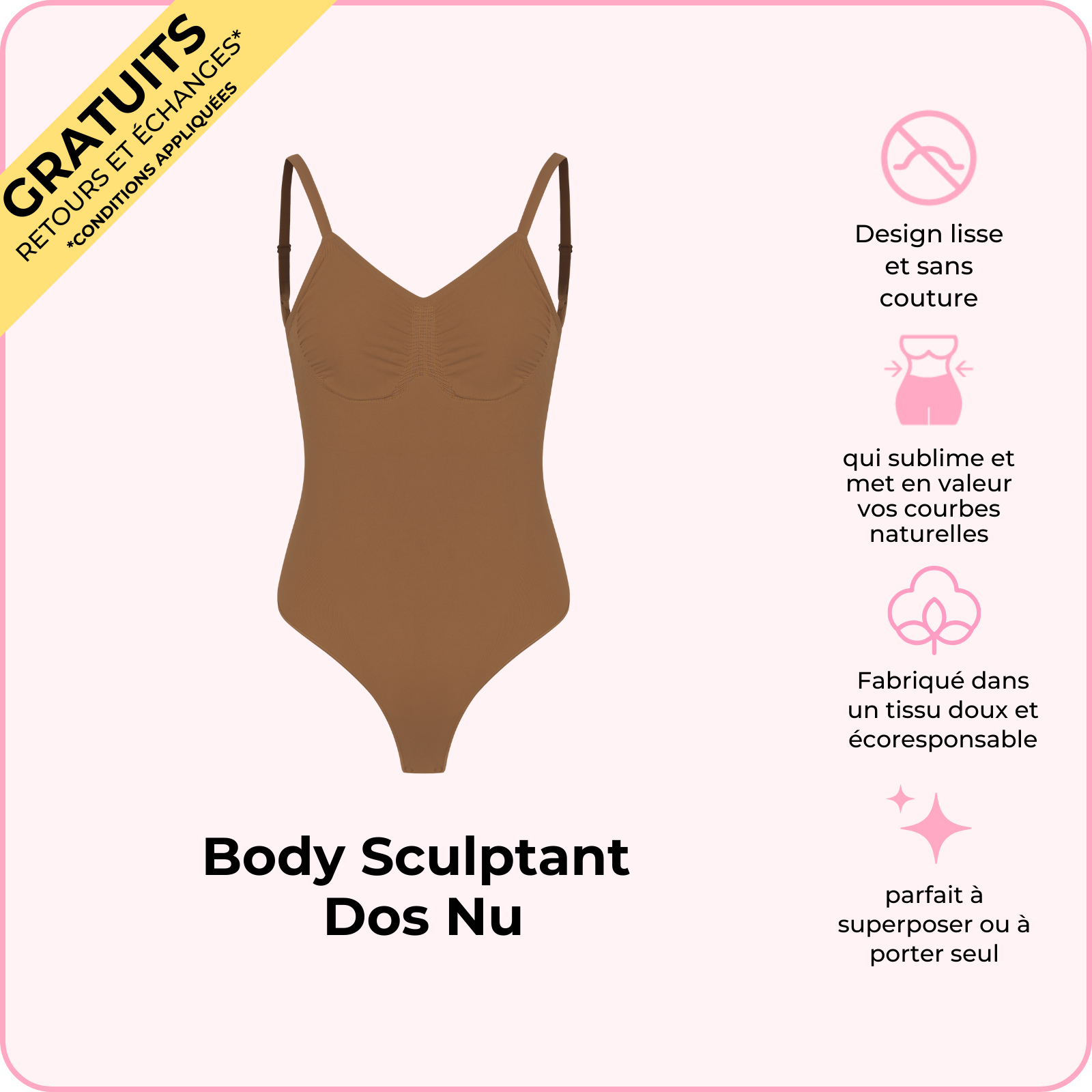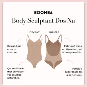 Renforcez votre confiance avec notre Body Sculptant dos nu BOOMBA ! C'est comme un superpouvoir secret pour votre garde-robe : une mise en valeur sans couture, un soutien ciblé et une silhouette lisse et impeccable. Son design ouvert dans le dos reste invisible sous vos tenues dos-nu, tandis que son tissu respirant vous assure un confort tout au long de la journée. Parfait pour un boost de confiance, que ce soit pour des occasions spéciales ou au quotidien !