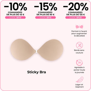Connectez les fermoirs et appuyez fermement sur les deux bonnets pour fixer votre soutien-gorge adhésif en place.