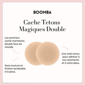 Les premiers Cache-Tétons Magiques Double sont conçus pour être adhésifs des deux côtés. Un côté se colle à votre vêtement et l'autre à votre peau. Cela permet de maintenir votre vêtement en place tout en restant indétectable sous vos hauts.
