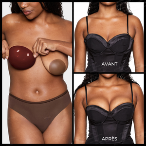 Veuillez noter que les résultats peuvent varier en fonction de la taille et de la forme des seins. Les résultats seront similaires à ceux d'un soutien-gorge double push-up. Les coques rembourrés de BOOMBA fonctionnent mieux avec des seins naturels.