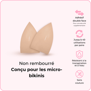 Coques Micro Lift : Spécialement conçues pour rester invisibles sous les micro bikinis. Légèrement rembourrées, elles rehaussent et évitent les accidents de décolleté.