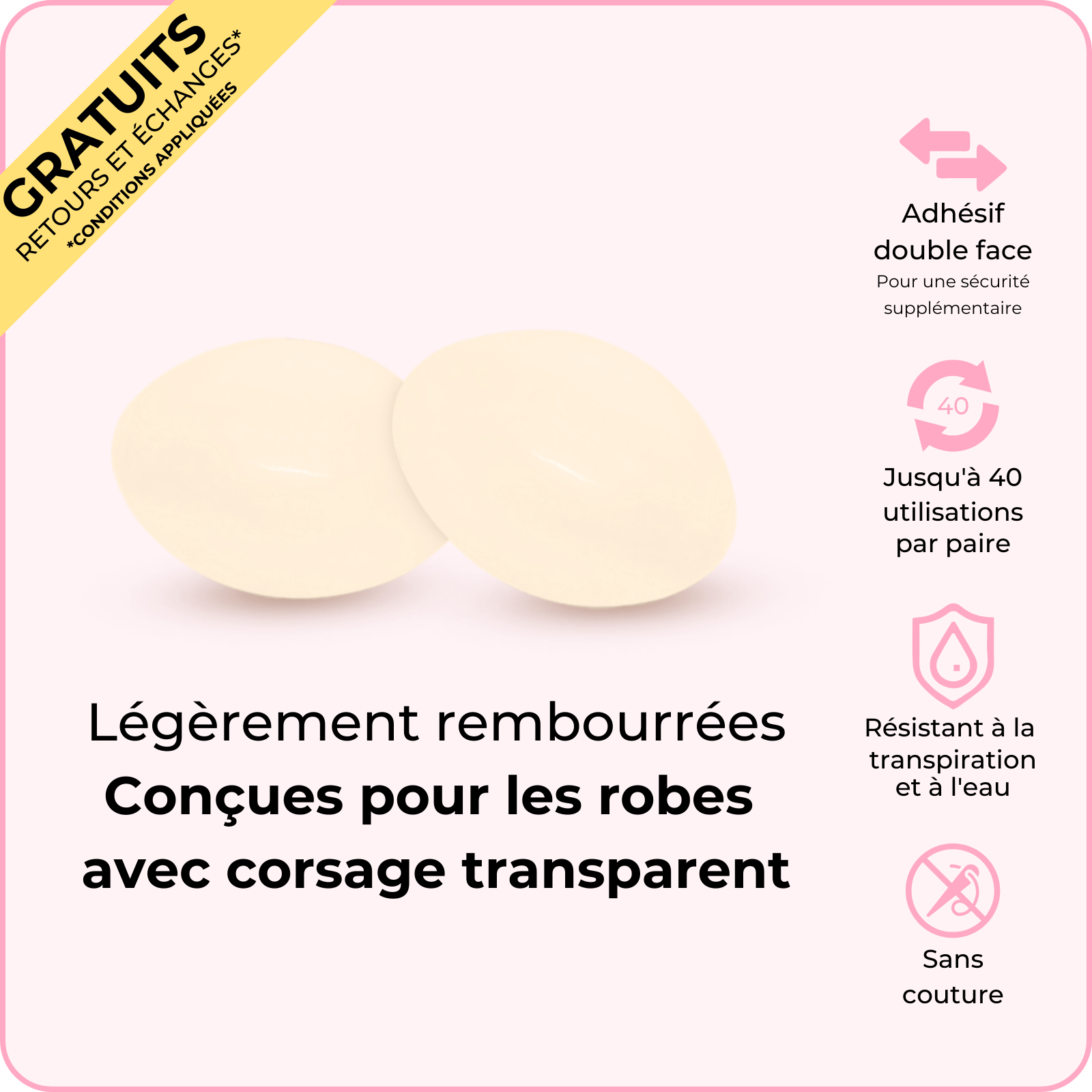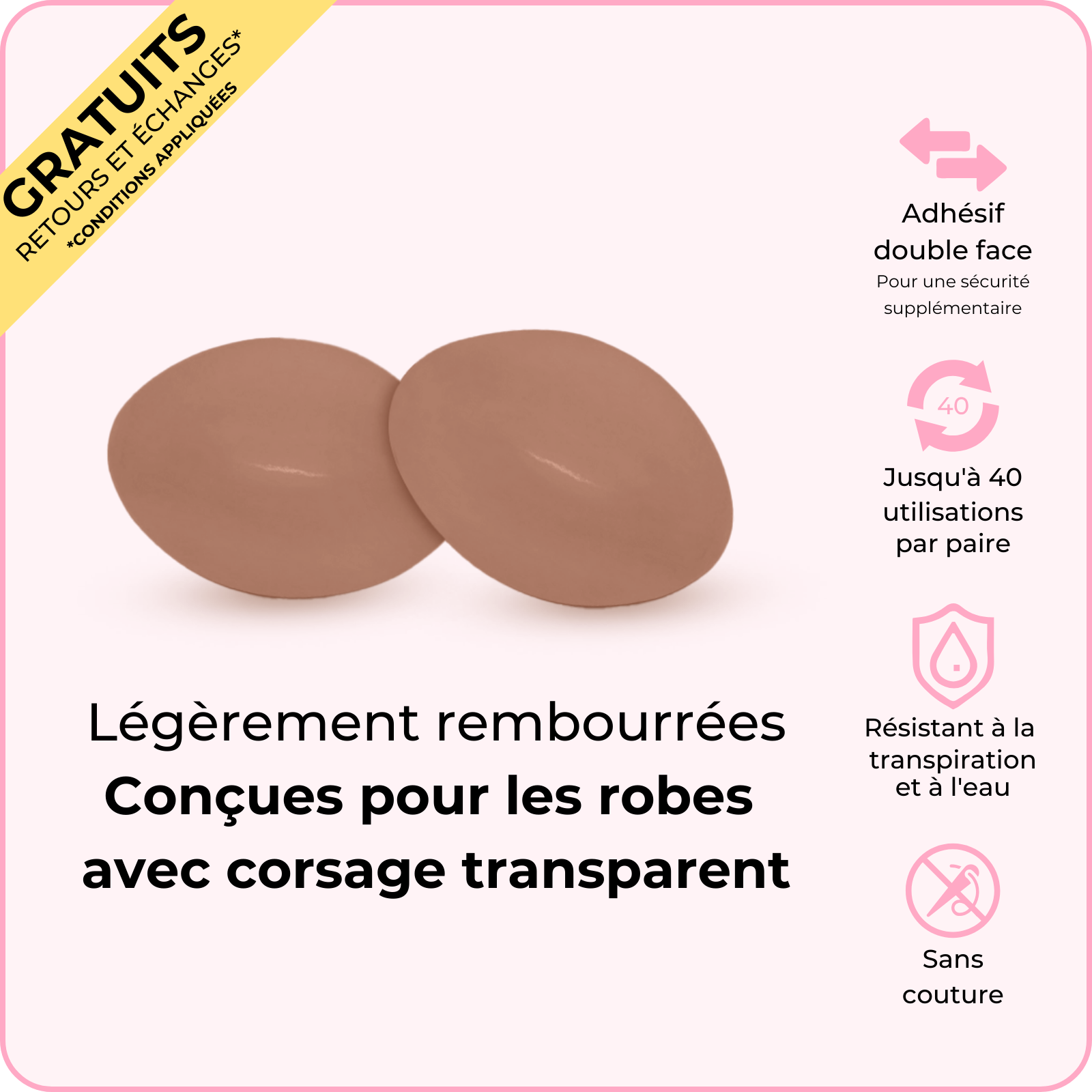 Ces coques légèrement rembourrées sont spécialement conçues pour apporter un léger rehaussement tout en offrant une sécurité contre les dysfonctionnements embarrassants de vos tenues. Idéales pour les robes de mariée avec un corsage transparent.