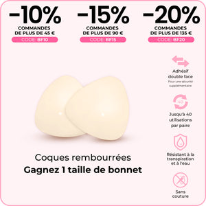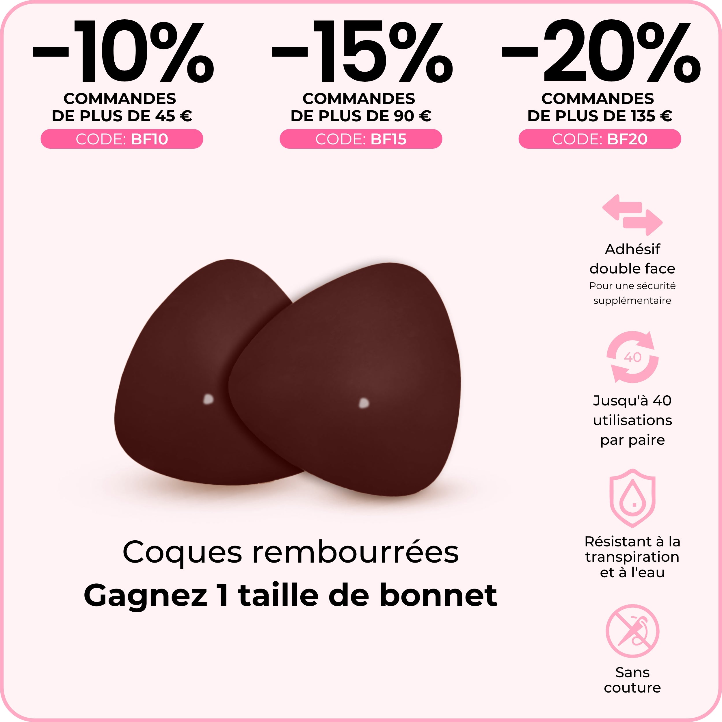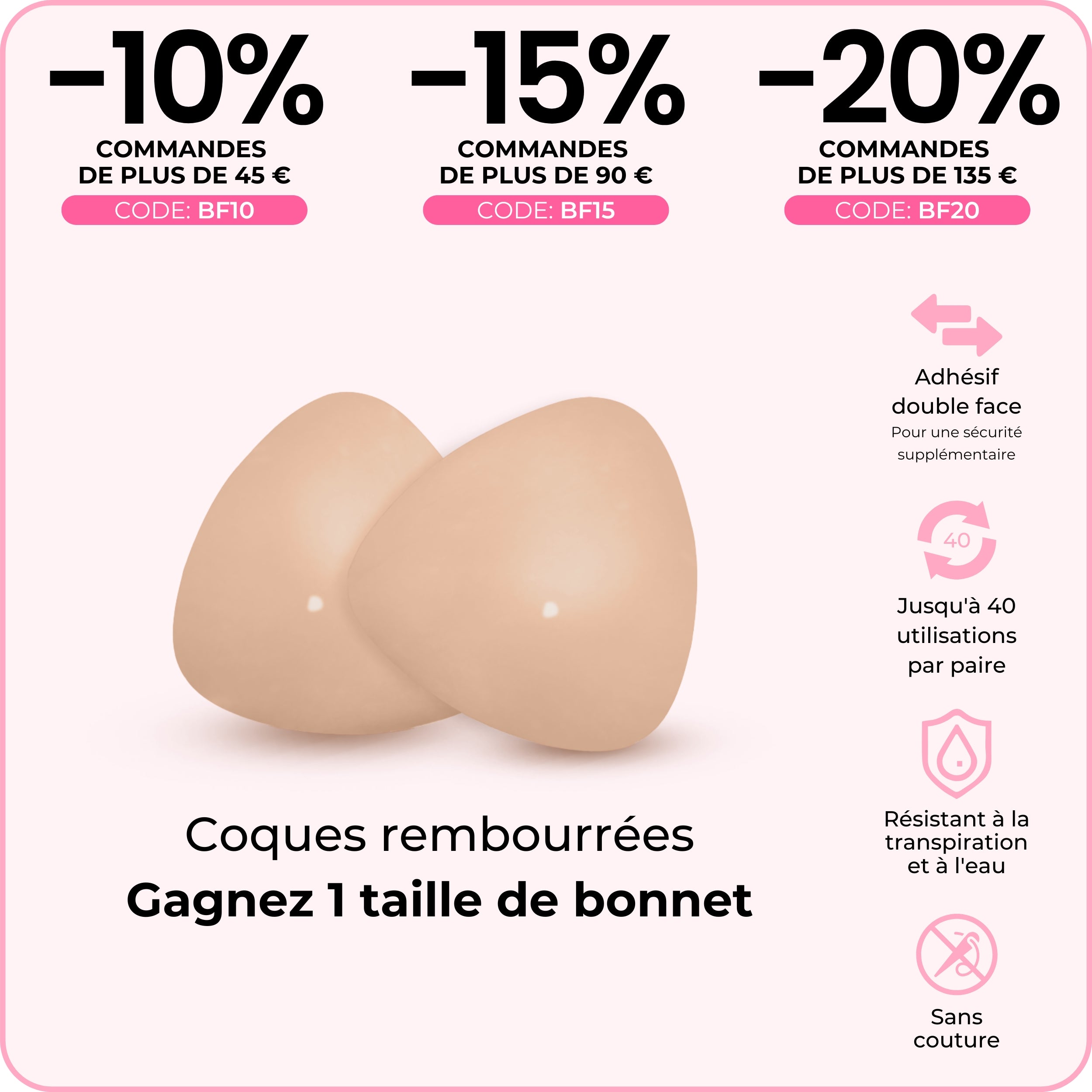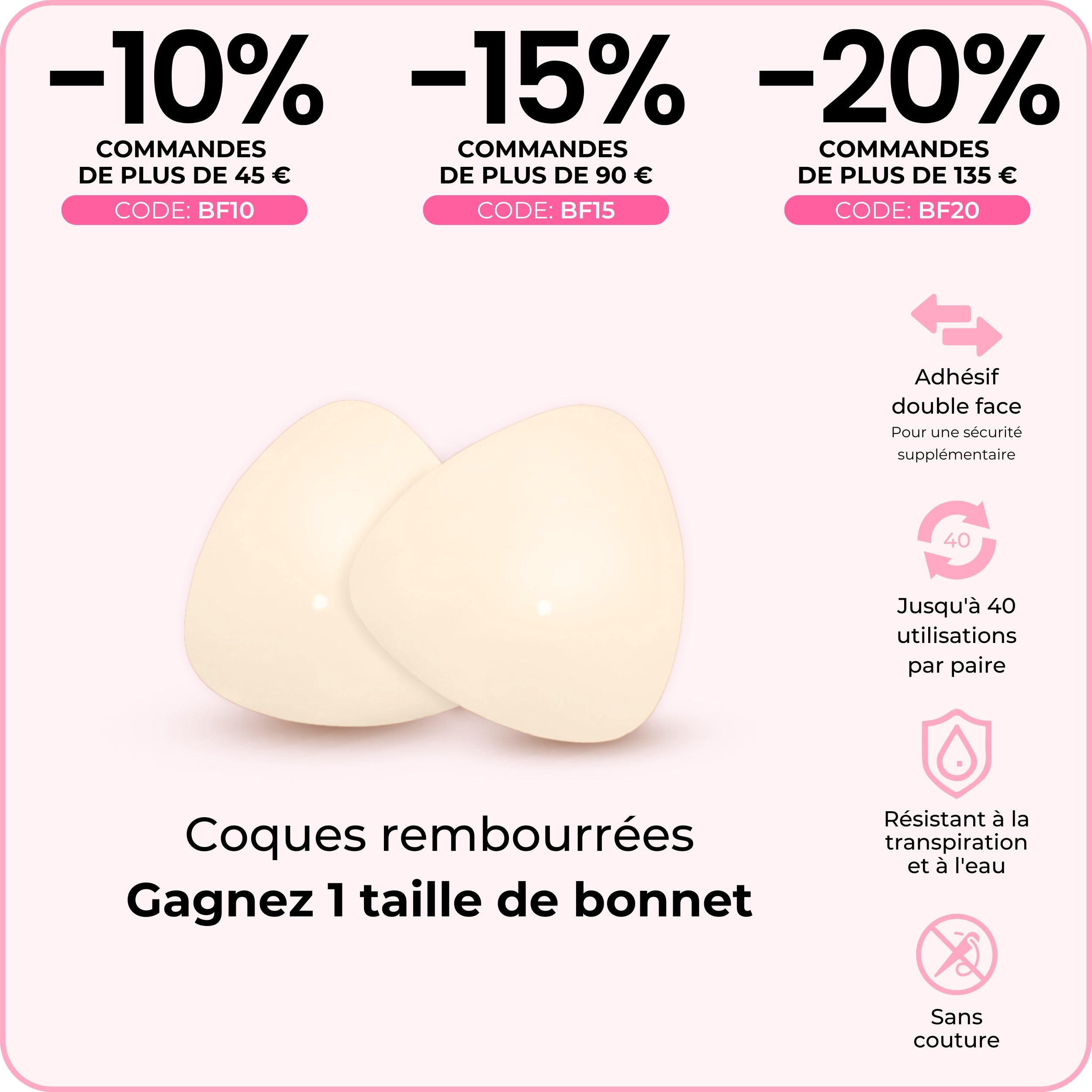 Coques Ultra Boost : Rehausse et ajoute 2 tailles de bonnet, parfait pour les décolletés plongeants et les bikinis triangles.