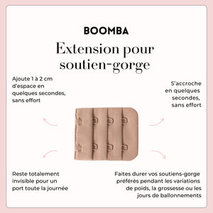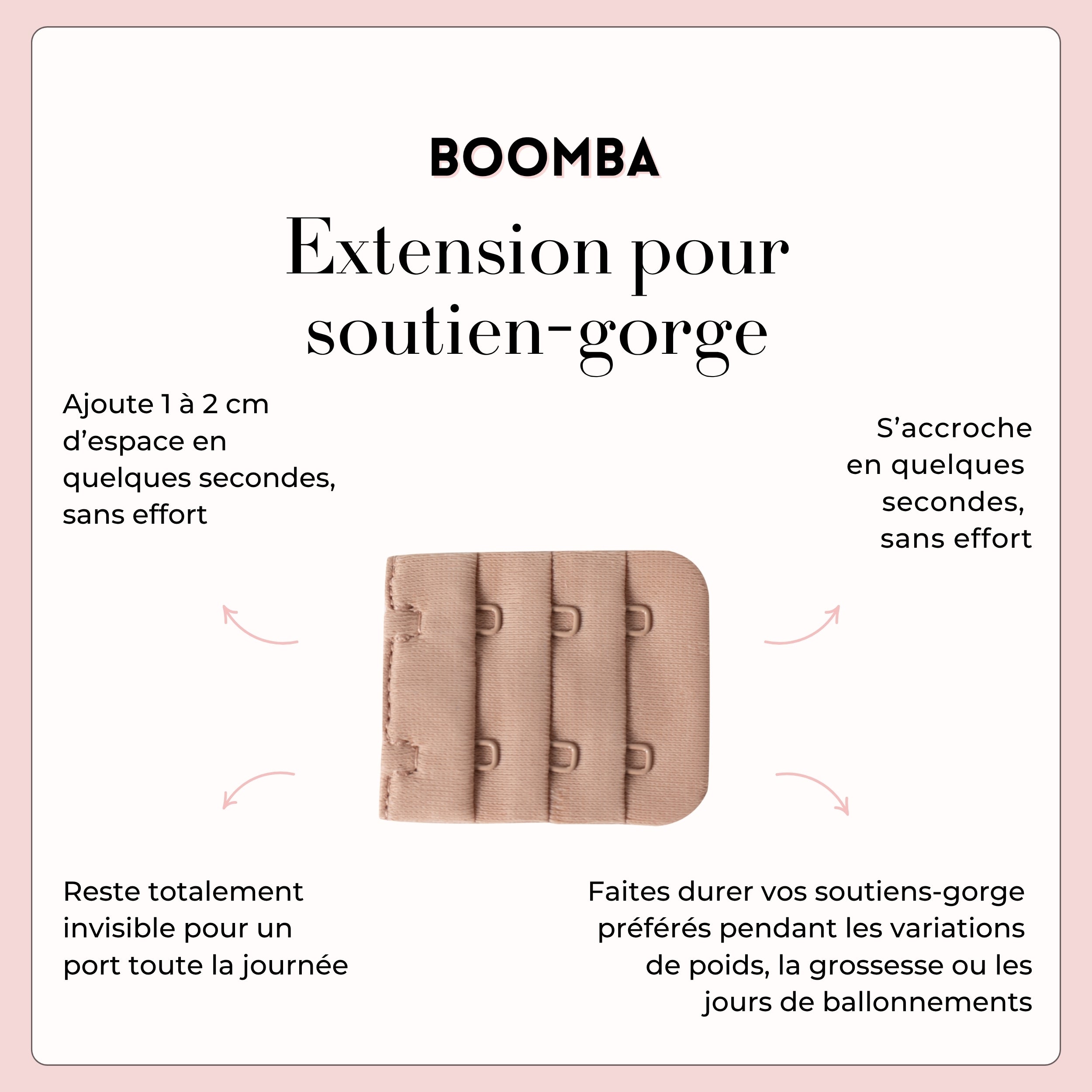 Parfois, votre soutien-gorge préféré a simplement besoin d’un peu plus d’espace. Notre extension pour soutien-gorge est la solution idéale lorsque vos soutiens-gorge BOOMBA (y compris nos modèles Comfy et maternité) vous semblent un peu serrés — que ce soit en raison de variations de poids, de ballonnements, de la grossesse ou tout simplement pour plus de confort en fin de journée.