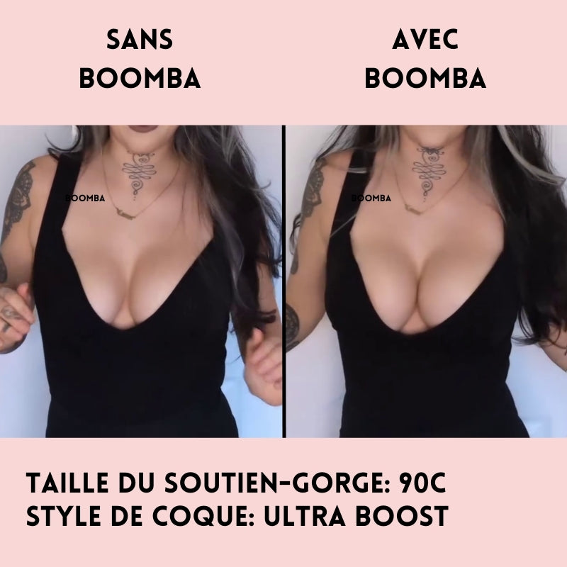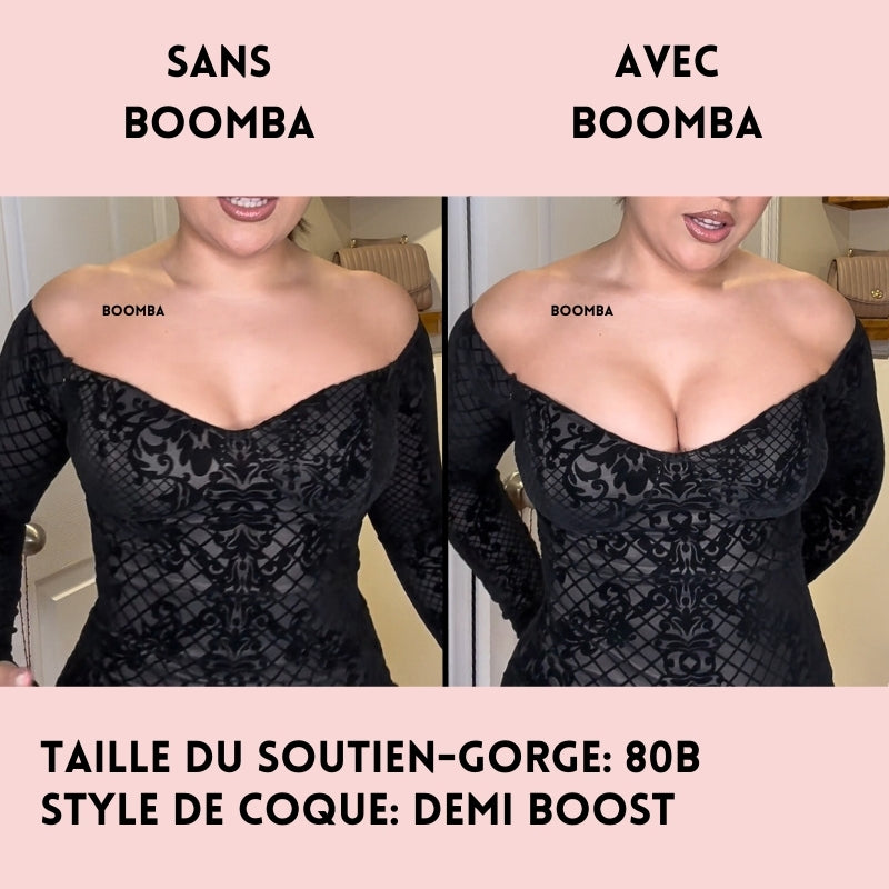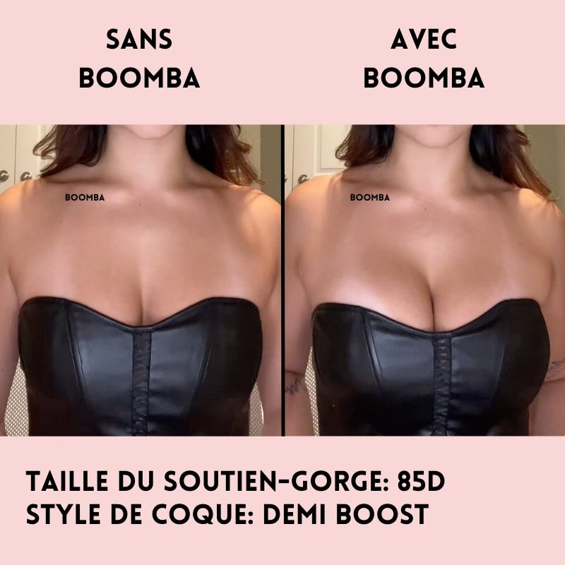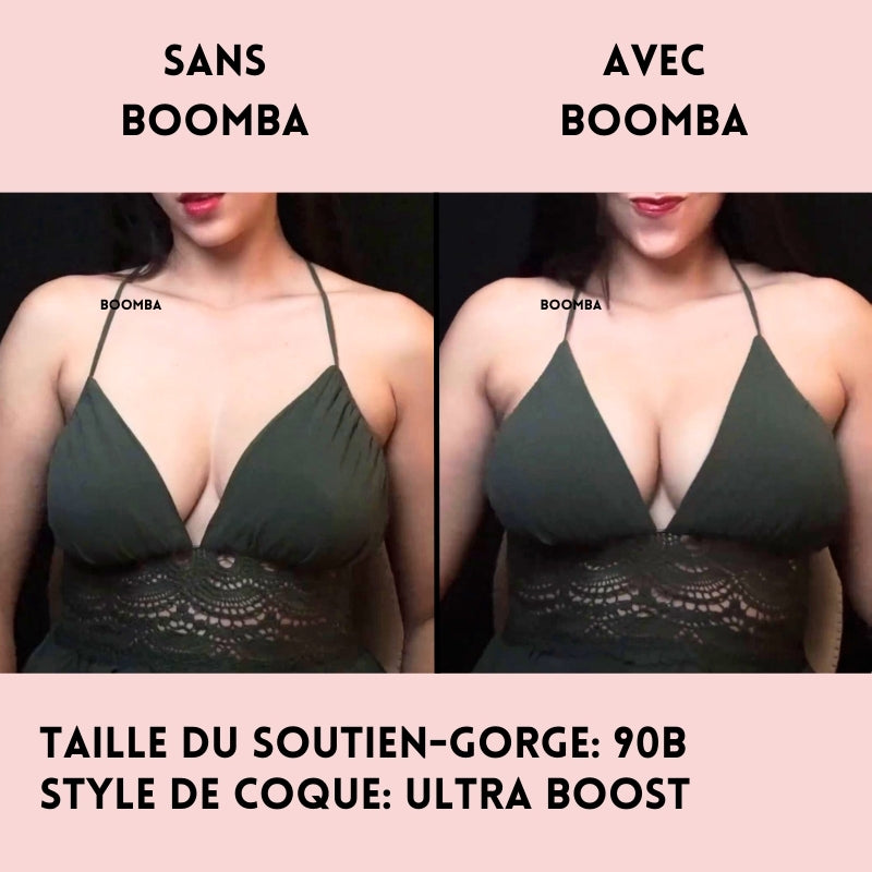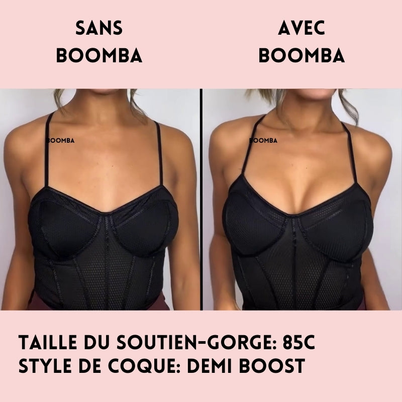 Veuillez noter que les résultats peuvent varier en fonction de la taille et de la forme des seins. Les résultats seront similaires à ceux d'un soutien-gorge double push-up. Les coques rembourrés de BOOMBA fonctionnent mieux avec des seins naturels.