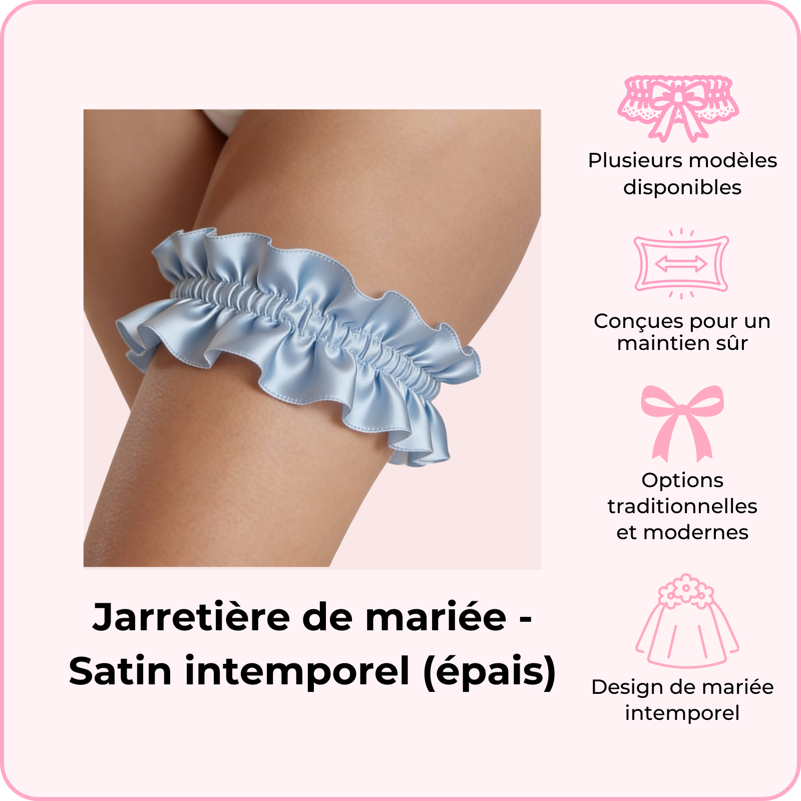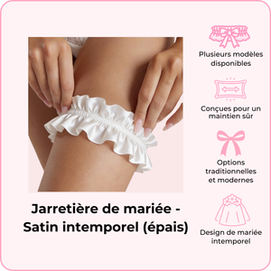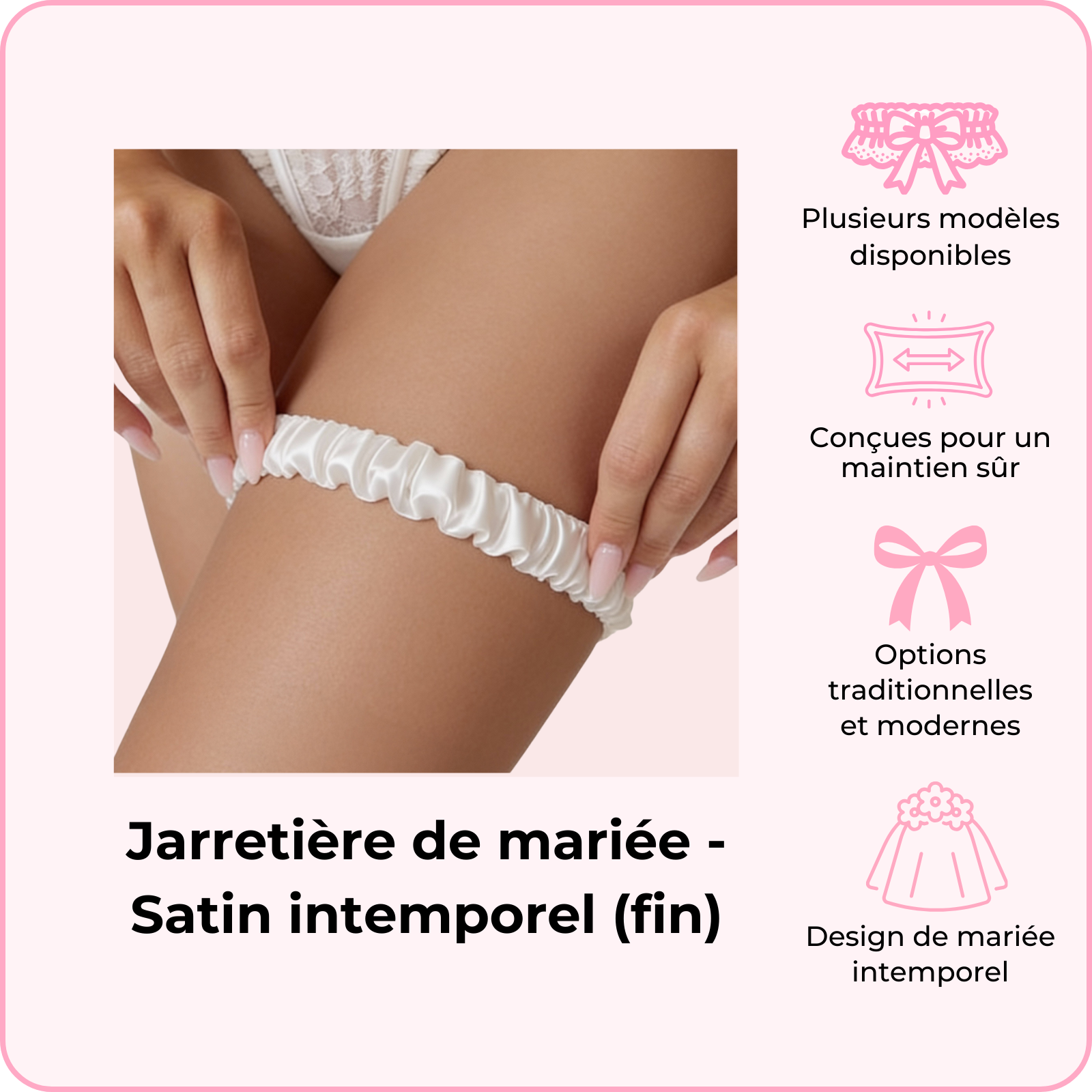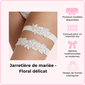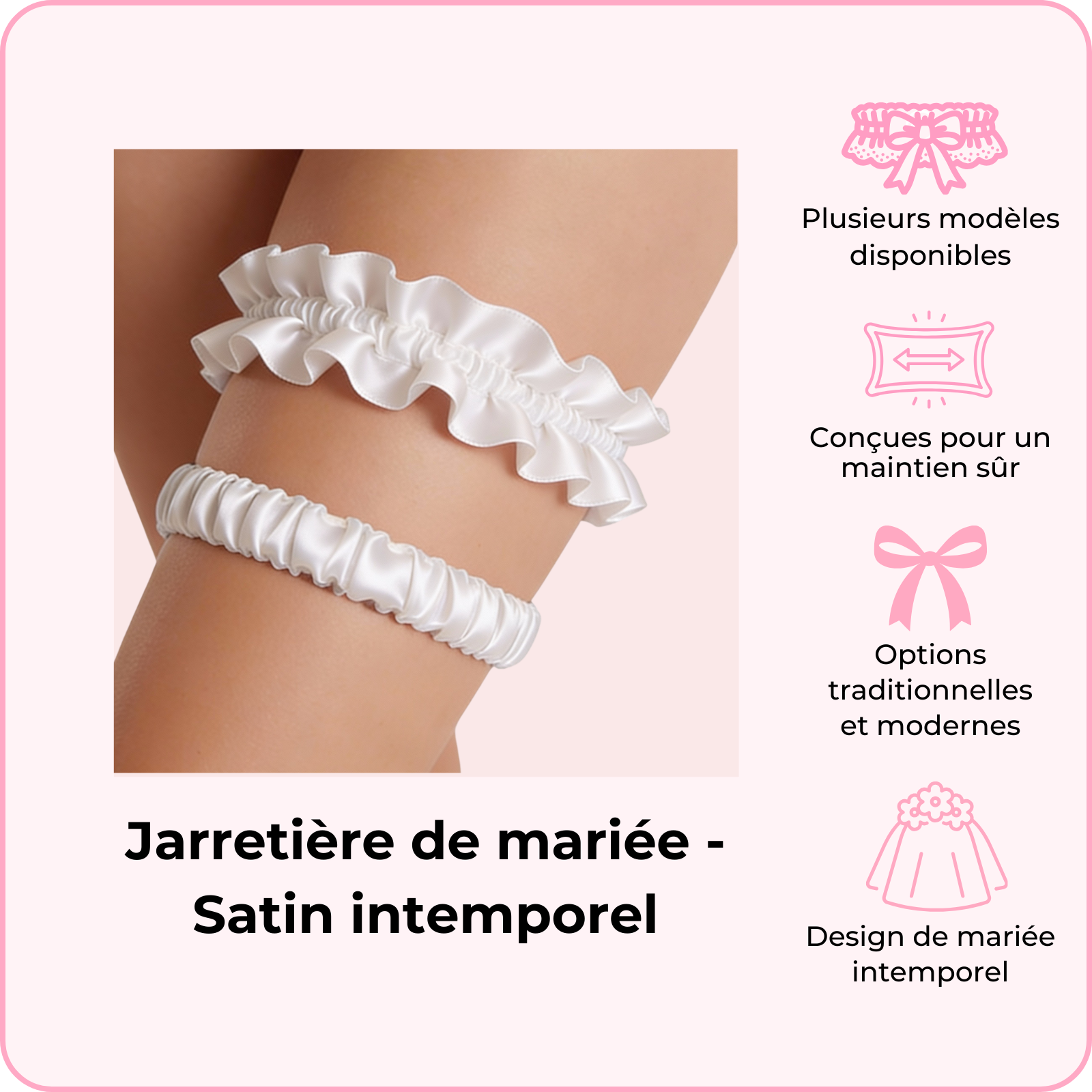 Disponibles dans une variété de styles de la dentelle traditionnelle aux designs modernes, chaque jarretière est fabriquée à partir de tissus doux et délicats, conçus pour rester parfaitement en place tout au long de la journée. Que vous recherchiez « quelque chose de bleu » ou une élégance intemporelle en ivoire, nous avons le style qui correspond à votre vision.