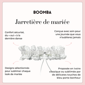 Le jour de votre mariage mérite d’être parfait. Les jarretières de mariée BOOMBA sont conçues pour être la touche finale idéale : élégantes, confortables et pensées pour célébrer l’un des moments les plus précieux de votre vie.