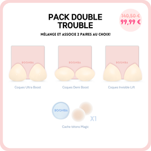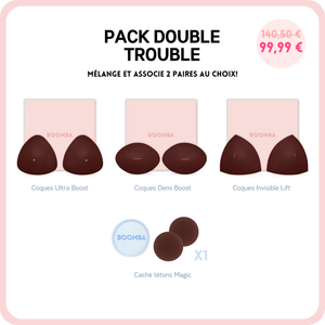 Tombez amoureuse du Pack Double Trouble: Ce lot comprend vos deux coques de votre choix et nos meilleures ventes de Cache-tétons Magiques pour aider à améliorer votre tenue.