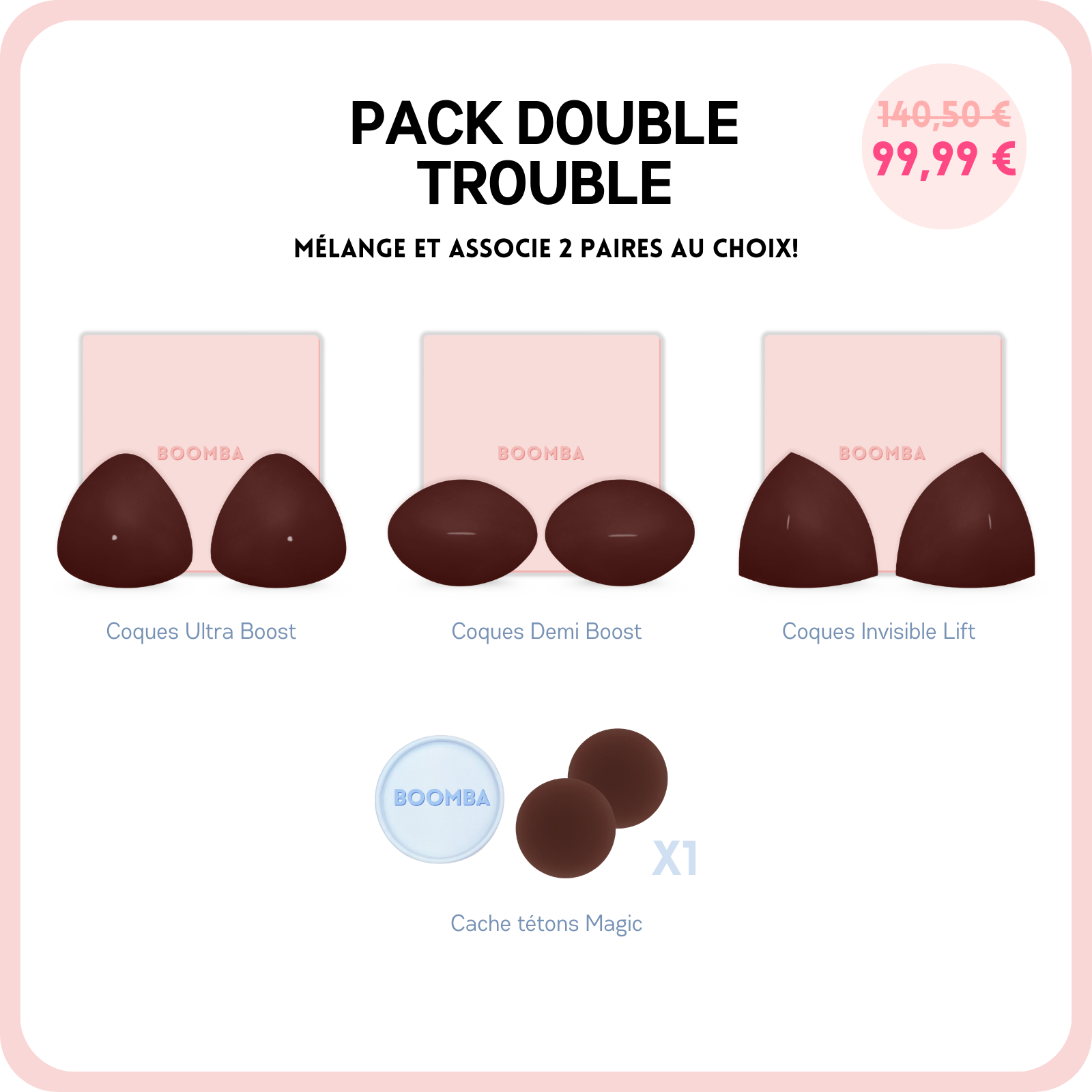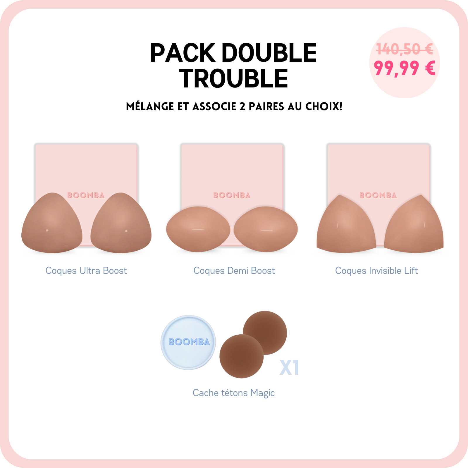 Coques Demi Boost (Lite): Rehausse et ajoute 1 taille de bonnet, parfait pour un effet légèrement amplifié.