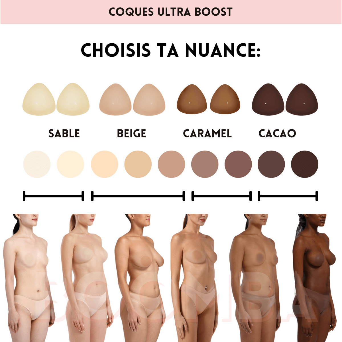 Coques Ultra Boost : Rehausse et ajoute 2 tailles de bonnet, parfait pour les décolletés plongeants et les bikinis triangles.