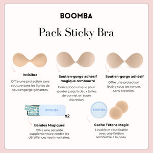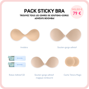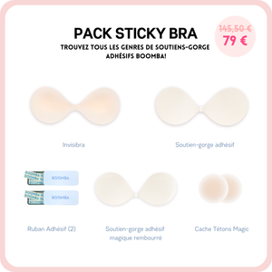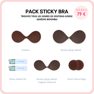 Soyez prête pour n'importe quelle tenue. Ce paquet de soutiens-gorge adhésifs BOOMBA comprend nos meilleures ventes Invisibra, Soutien-gorge adhésif ET notre dernière nouveauté, le Soutien-gorge adhésif magique rembourré ! Il comprend également nos célèbres Cache-tétons magiques, ainsi que 2 boîtes de ruban adhésif.