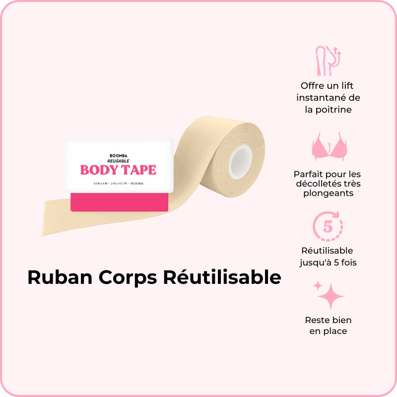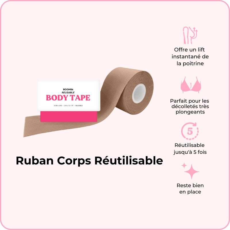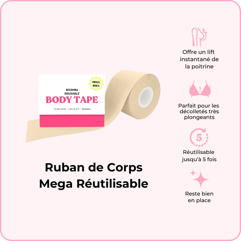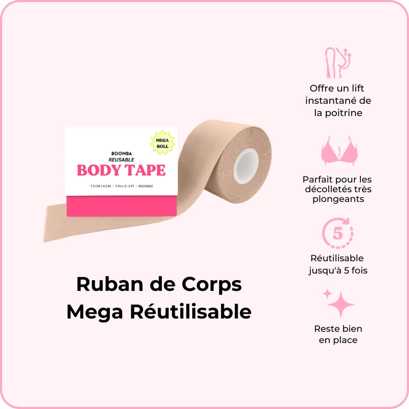 Le ruban réutilisable de BOOMBA peut être réutilisable jusqu'à cinq fois. Concu pour epouser vos formes, notre ruban est souple et fort en même temps, offrant des résultats durables pendant plus de 12h.