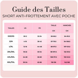 Guide des Tailles du Short anti-frottement avec poche de BOOMBA