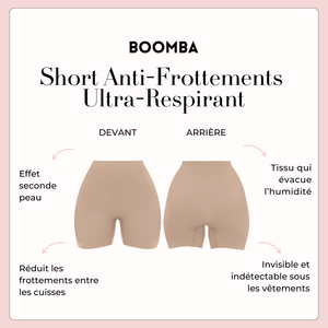 Frottements entre les cuisses ? Pas aujourd’hui. Le Short Anti-Frottements Ultra-Respirant de BOOMBA est votre couche de base idéale pour un confort doux et respirant.