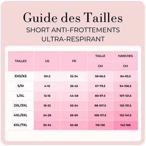 Guide des Tailles du Short Anti-Frottements Ultra-Respirant de BOOMBA