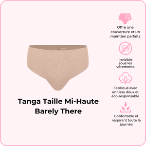 Découvrez le Tanga Taille Mi-Haute Barely There BOOMBA - aussi confortable qu'une seconde peau, mais bien plus mignon ! Fabriqué dans un tissu ultra-doux et sans coutures, ce petit bijou offre un confort incomparable tout au long de la journée et reste parfaitement invisible sous vos vêtements. Avec sa coupe mi-haute, il offre un équilibre parfait entre couverture et style, idéal pour un usage quotidien.